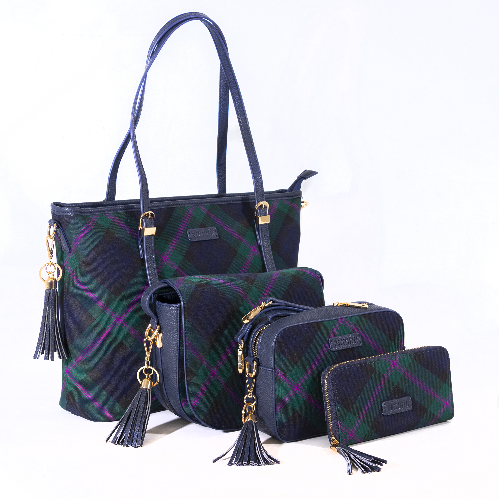 Der elegante “Shopper” aus klassischem Tartan ist mit einer offenen Tasche auf der Rückseite für einfachen Zugriff ausgestattet. Im Innern befindet sich eine mit Reisßverschluss verschließbare und eine offene kleine Tasche für notwendige Utensilien.
